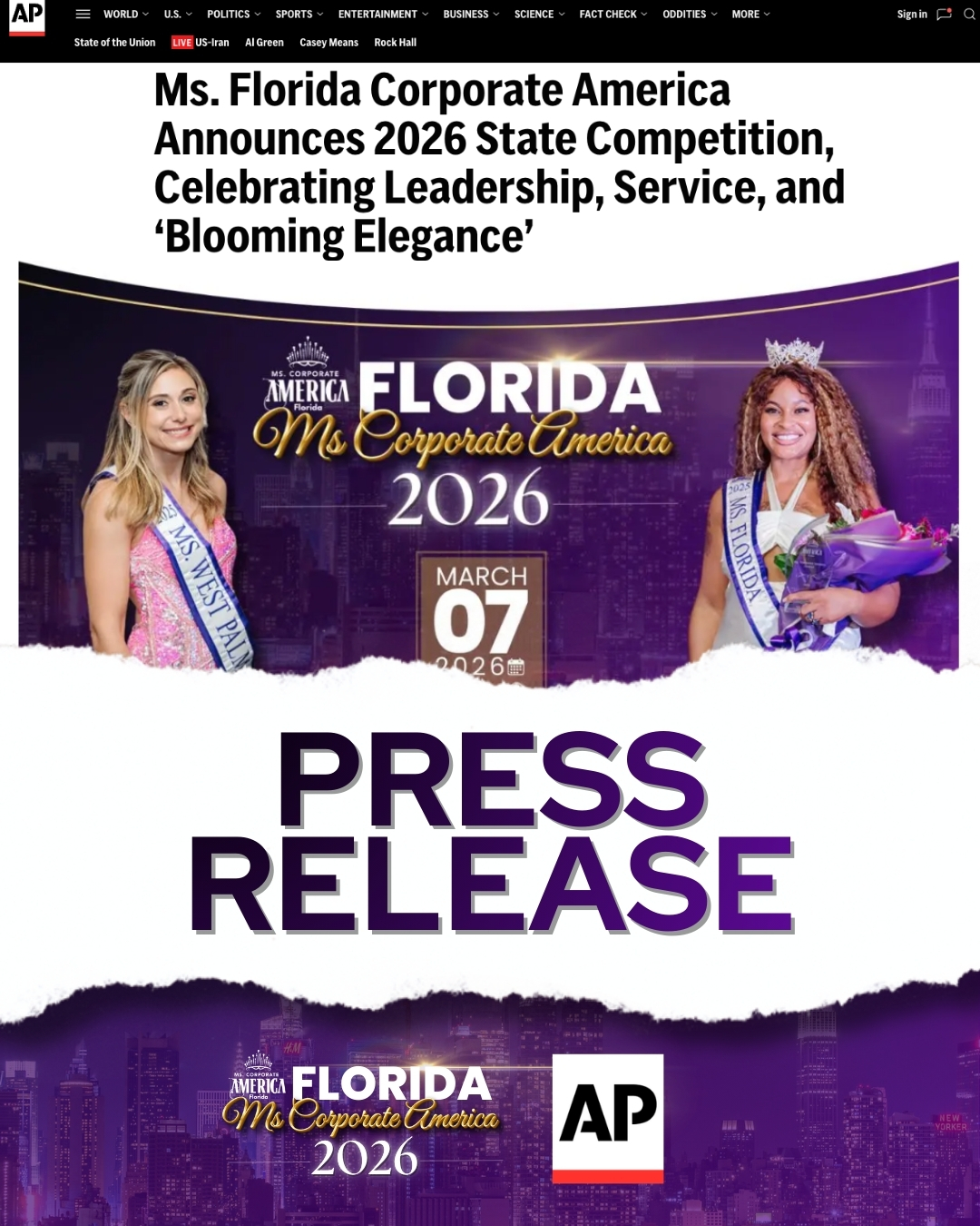 ORLANDO, FL — The 2026 Ms. Corporate America Florida State Competition will be held March 7 at Rosen Plaza Hotel. With the theme “Blooming Elegance: An All White Soirée,” the event celebrates women leaders across Florida competing for the state title and the chance to advance nationally. Guests are invited to dress in white with hints of purple as the evening honors leadership, service, and community impact.