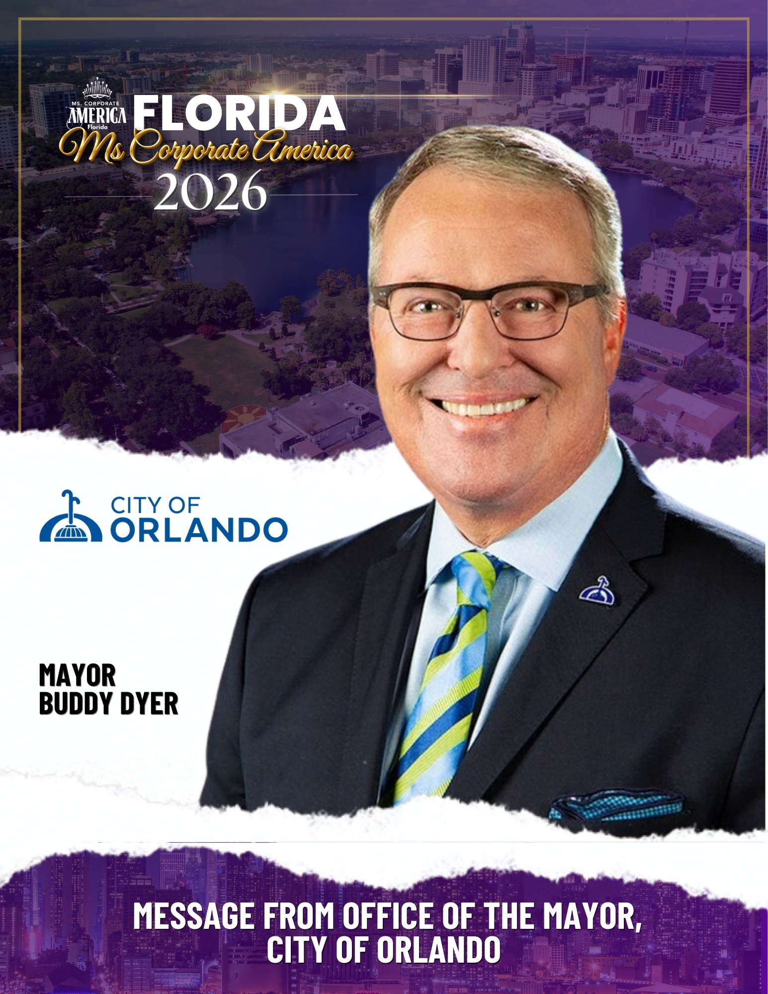We are honored to receive a special welcome message from Buddy Dyer as we prepare for the Ms. Corporate America Florida 2026 State Competition in Orlando. In his memorandum, the Mayor celebrates the gathering of outstanding women leaders from across Florida and welcomes our queens, guests, and supporters to experience the vibrant culture, community, and opportunities that make Orlando a truly remarkable destination.