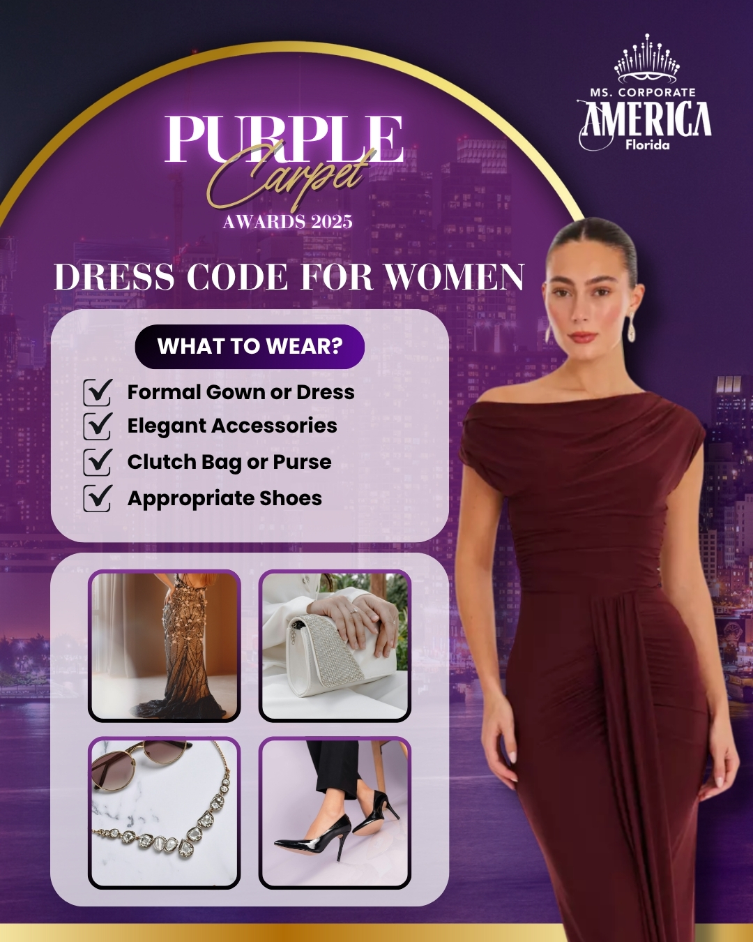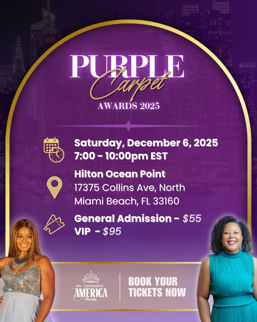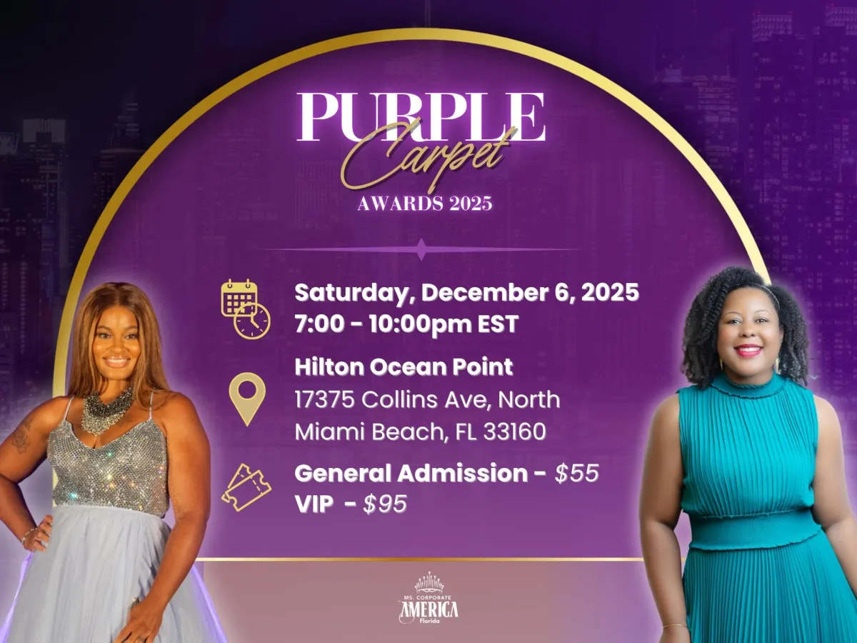 Mark your calendars for December 6, 2025 — the spotlight is on the Ms. Corporate America Florida Purple Carpet Awards in Miami, FL.
