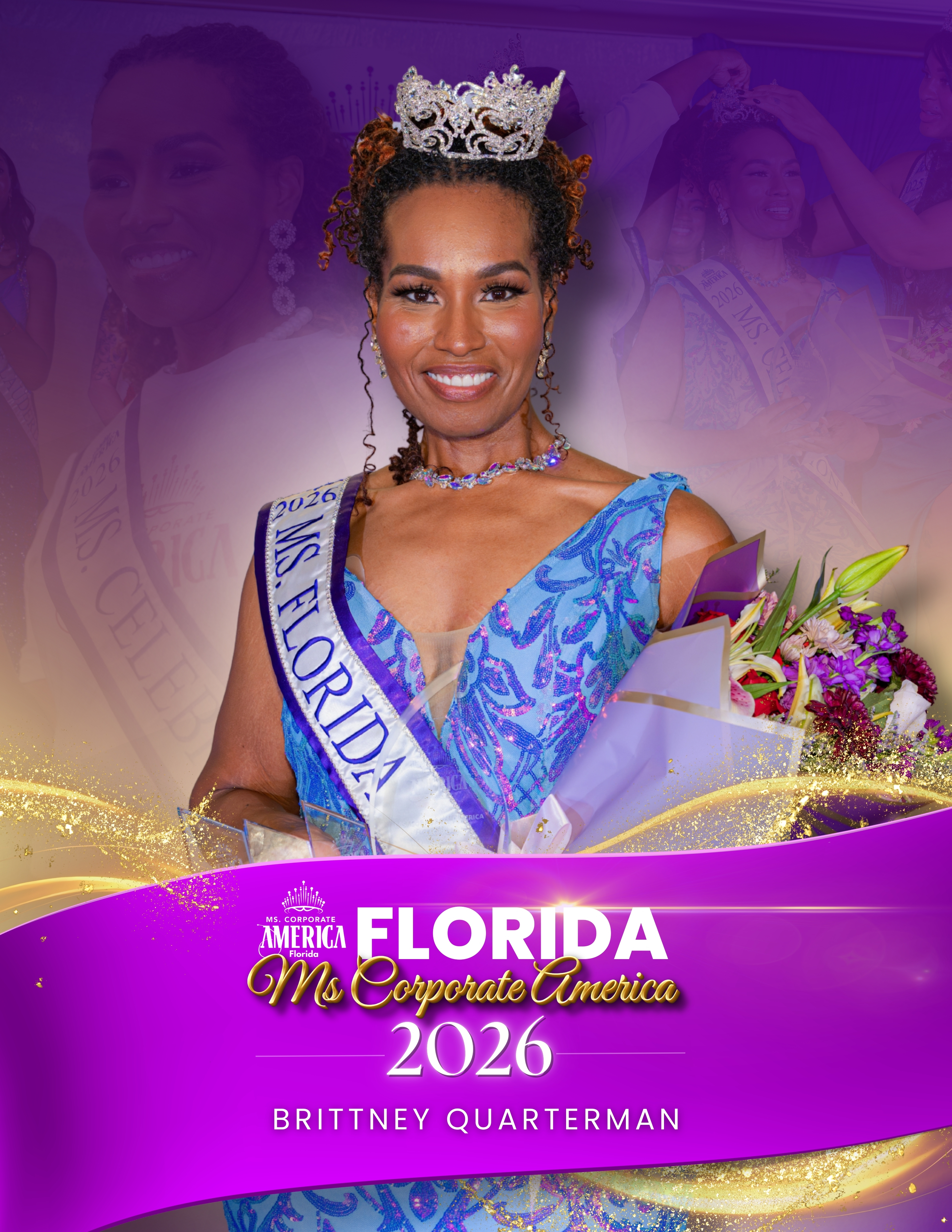 We are proud to introduce Brittney Quarterman, the newly crowned Ms. Corporate America Florida 2026, a visionary entrepreneur, community builder, and creative director who is redefining what corporate leadership looks like in action.